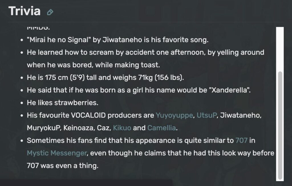 Xanduは、ボカロPとして、ゆよゆっぺさん、鬱Pさん、ジワタネホさん、無力Pさん、Keinoazaさん、Cazさん、きくおさん、Camelliaさん、が好きだとしています。