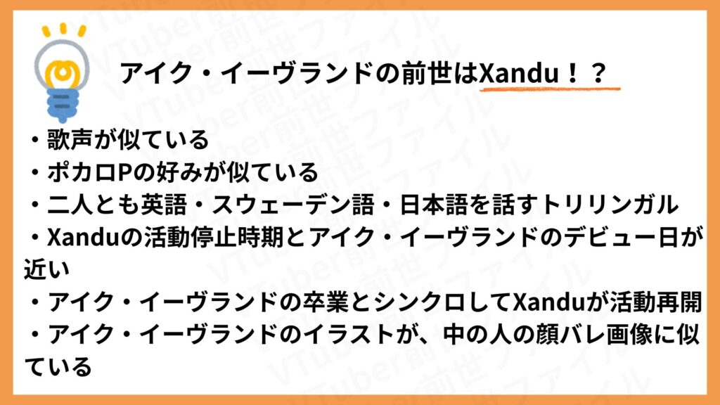 こうした6つの共通点から、ファンの間ではアイク・イーヴランドの前世はXanduだと、確信に近い声が上がっています。