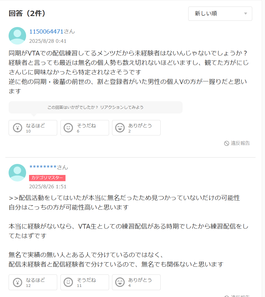 一方で、料理系VTuberやASMR系の個人勢など規模が小さくファン層がにじさんじ視聴者と重なっていなかった場合、声や話し方に共通点があっても気づかれにくく、特定に至らないケースも十分にあり得ます