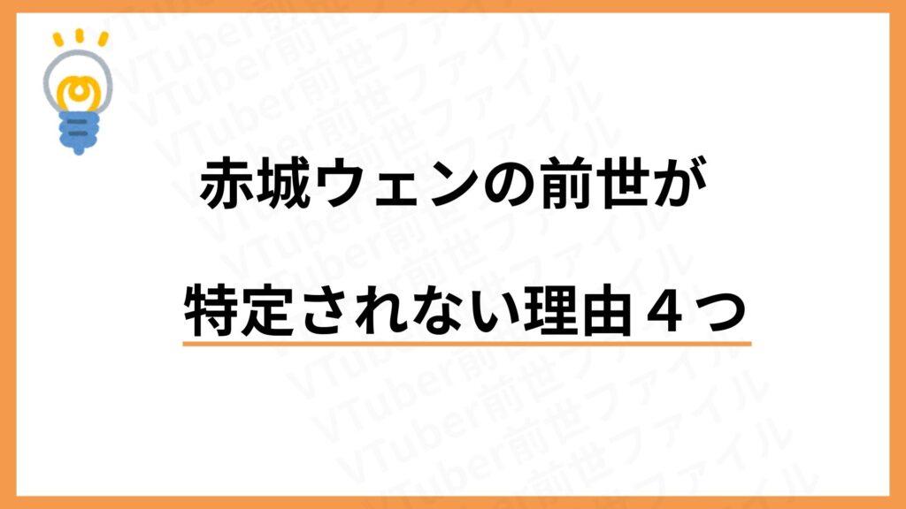 赤城ウェンの前世が特定されていない理由として、前世が「無名の個人勢だった可能性が高い」という見方が挙げられています。