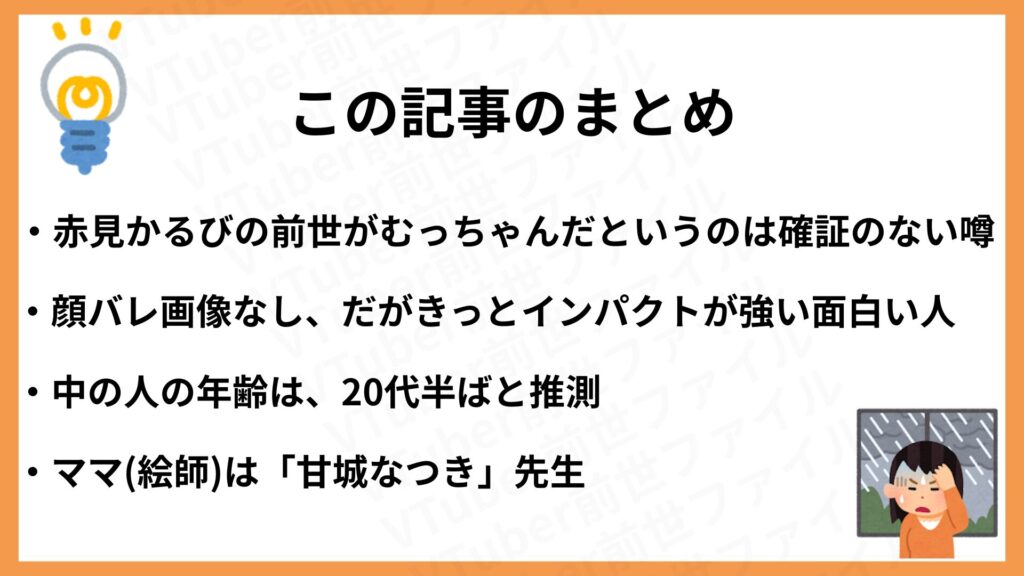この記事では、赤見かるびの前世(中の人)、顔バレや年齢について、さまざまな情報を整理しながらわかりやすく解説します!