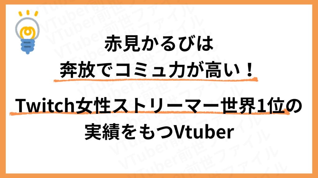 またTwitch女性ストリーマー世界1位の実績記録をもっています、個人VTuberとしてこれは前代未聞の快挙と言えるでしょう。