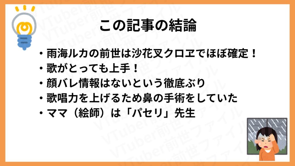 この記事では、雨海ルカの前世(中の人)、顔バレや年齢について、さまざまな情報を整理しながらわかりやすく解説します!
