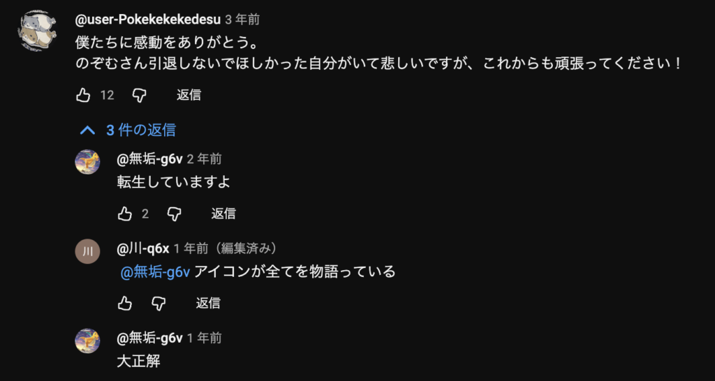 この動画の投稿欄にも、天音カナタの前世がのぞむでは、と推測するコメントが投稿されていました。