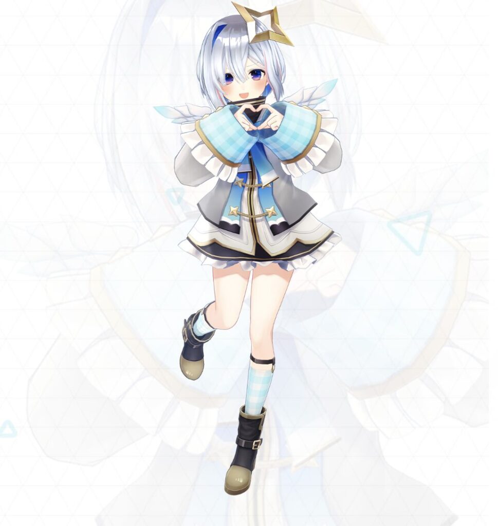 | キャラ設定 | 天界学園に通う天使。親しい人の前では元気だが、人が増えるほど静かになる陰キャ。休日は家に引きこもる。いつか、さいたまスーパーアリーナでLIVEを開催することを目標に活動している。 |