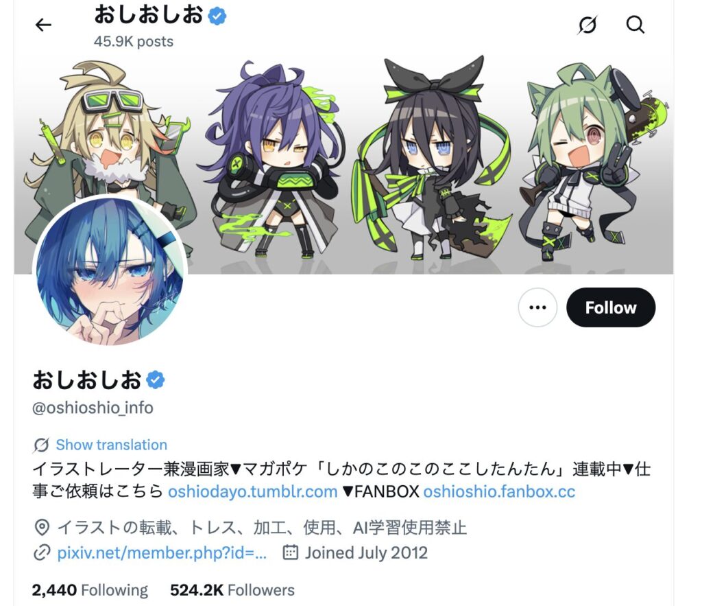 おしおしお先生は、漫画連載、ライトノベルの挿絵、Vtuberのキャラクターデザインなど多方面に渡り活躍しているイラストレーターです。
