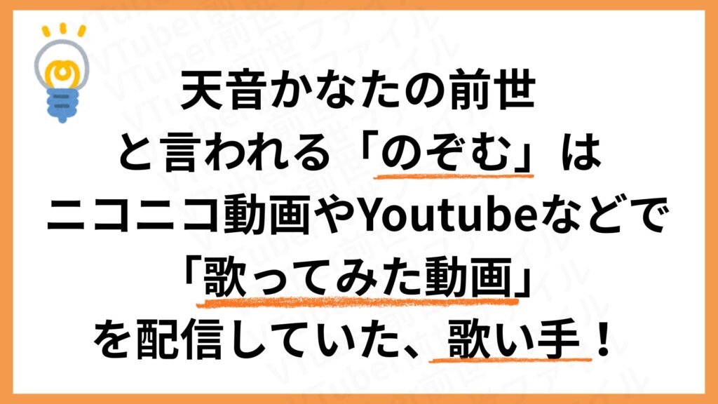 なんと、天音かなたは、ニコニコ動画などで「歌ってみた動画を」配信していた「のぞむ」では?と噂になっているようです。