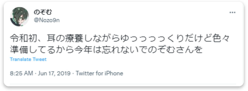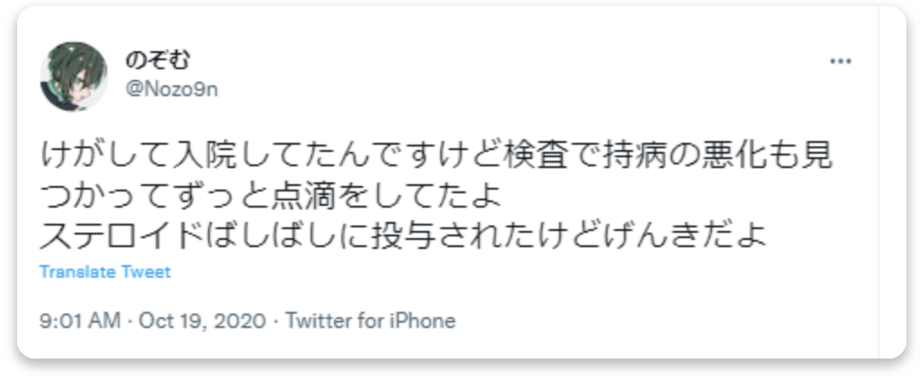 のぞむは、2020年10月に、Twitterで、交通事故で入院していたことを発信しています。