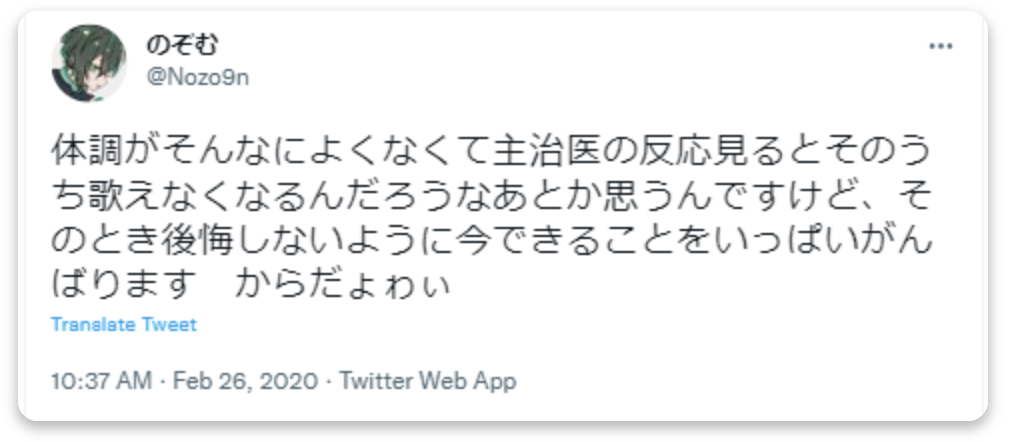 のぞむは、2022年2月28日に「実はコロナになってました」という投稿をしていました。