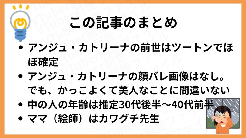 この記事では、アンジュ・カトリーナの前世(中の人)、顔バレや年齢について、さまざまな情報を整理しながらわかりやすく解説します!