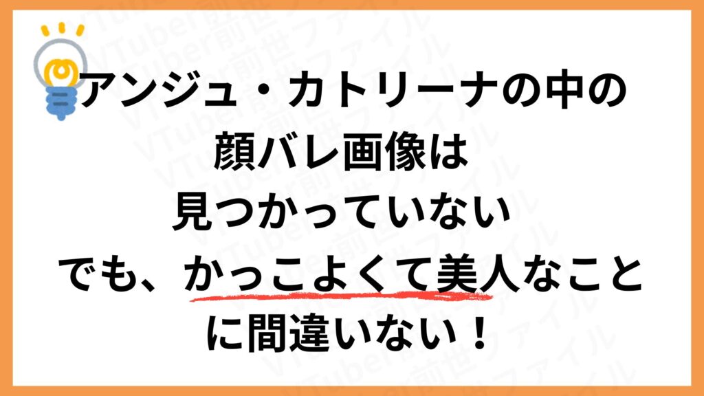 アンジュ・カトリーナの中の人について、顔バレ画像は現在まで確認されていません。