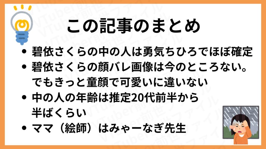 この記事では、碧依さくらの前世(中の人)、顔バレや年齢について、さまざまな情報を整理しながらわかりやすく解説します!