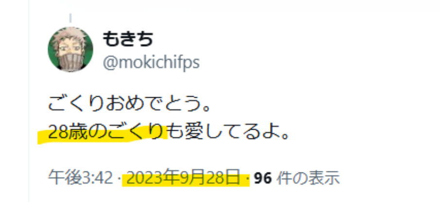 Gokuriは2023年9月28日に28歳の誕生日を迎えていることが以下のツイートからわかります。