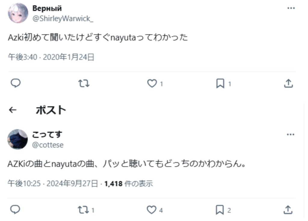 そっくりすぎる歌声により、AZKiの前世はnayutaだと言われるようになりました。