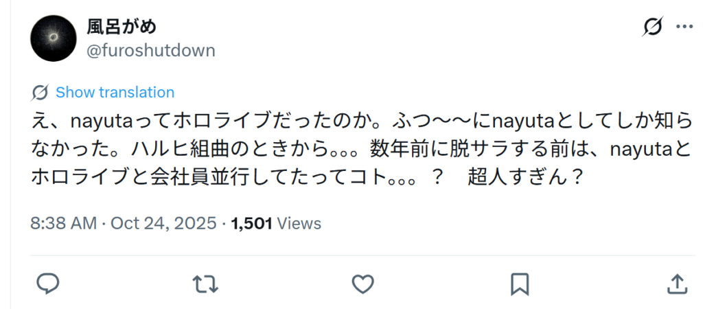 そしてnayutaは2023年7月末まで「普通の会社員」として働いていたらしく、それについての配信もメンバーシップ限定でですが残されていました。