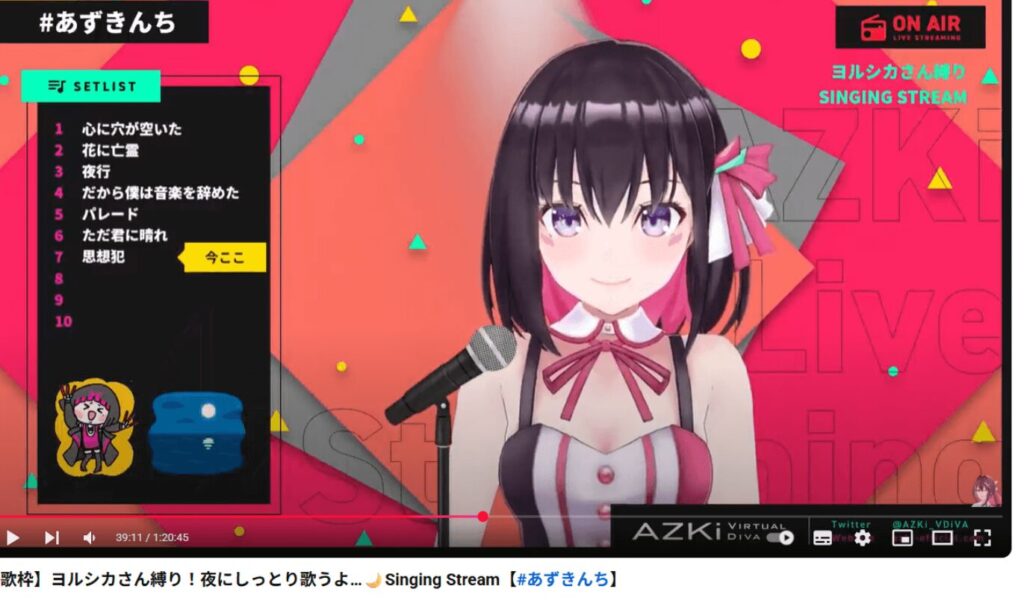 まずAZKiは、「ヨルシカ」と言う歌手が好きで、ヨルシカの楽曲のみを特集した歌枠配信も実施するほどの熱狂的ファンでした。