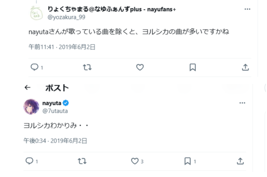 nayutaも同じく、ヨルシカが好きなことが過去のXにて分かっています。