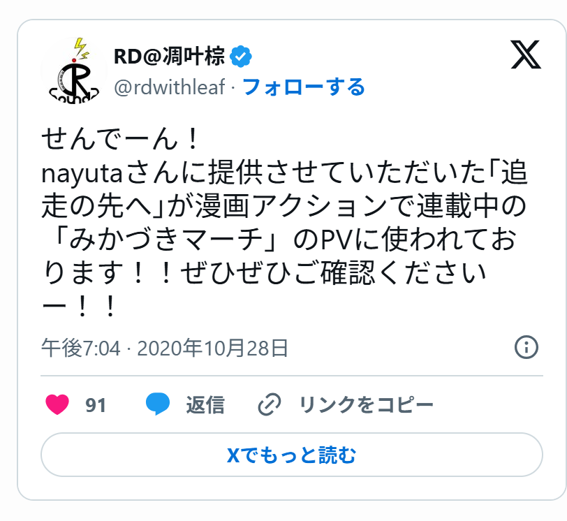 その後2020年には、nayutaが歌唱したアニメ「みかづきマーチ」の楽曲も同じRD-Soundsが制作しました。