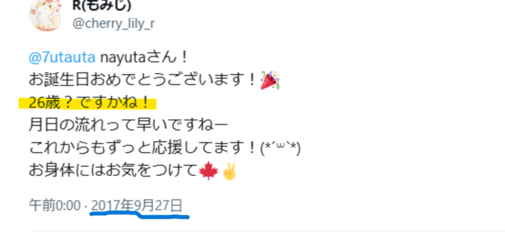nayutaは2017年の9月27日に26歳の誕生日をXにて祝われていました。