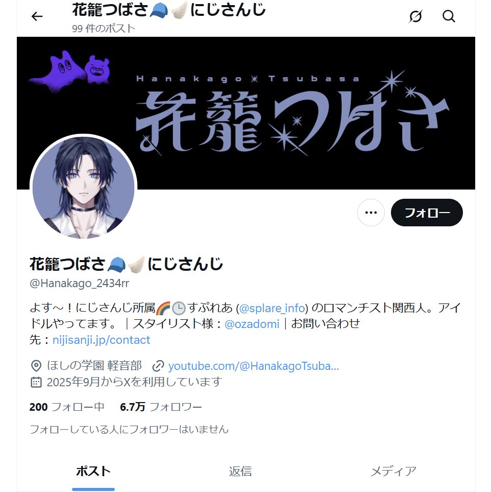 花籠つばさは、にじさんじ所属の男性VTuberです。