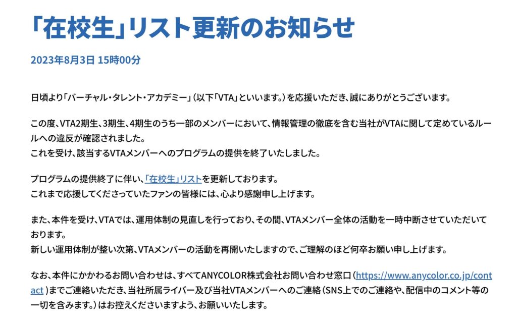 過去のVTAメンバー内での情報管理トラブルなどを踏まえると、なおさらです。