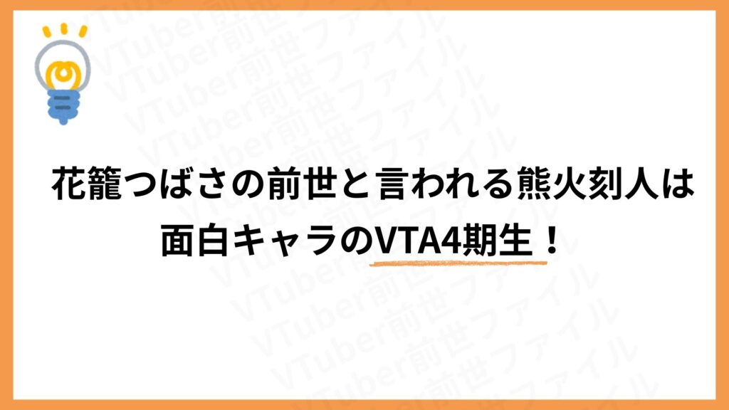 熊火刻人は、VTA(バーチャル・タレント・アカデミー)の4期生として活動していました。