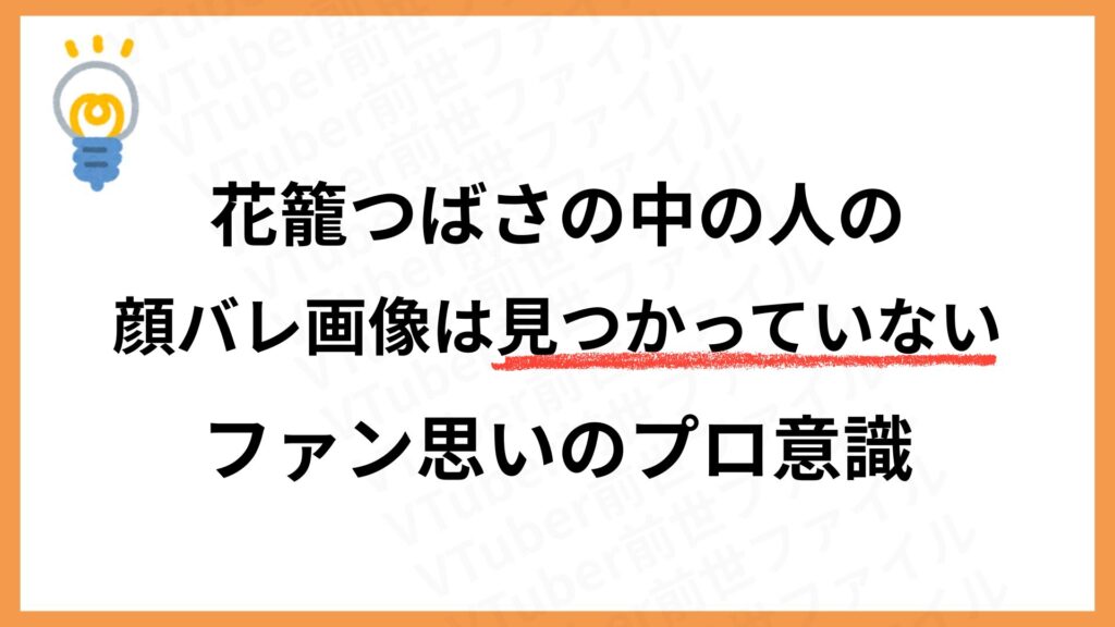 花籠つばさの中の人については、現時点で顔バレに関する情報は一切なく、画像なども出回っていません。