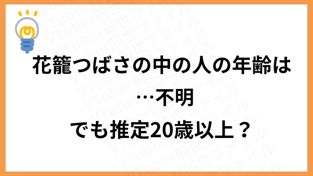 花籠つばさ中の人の年齢は全く不明で、推定として20歳以上ではないかと考えられる程度。