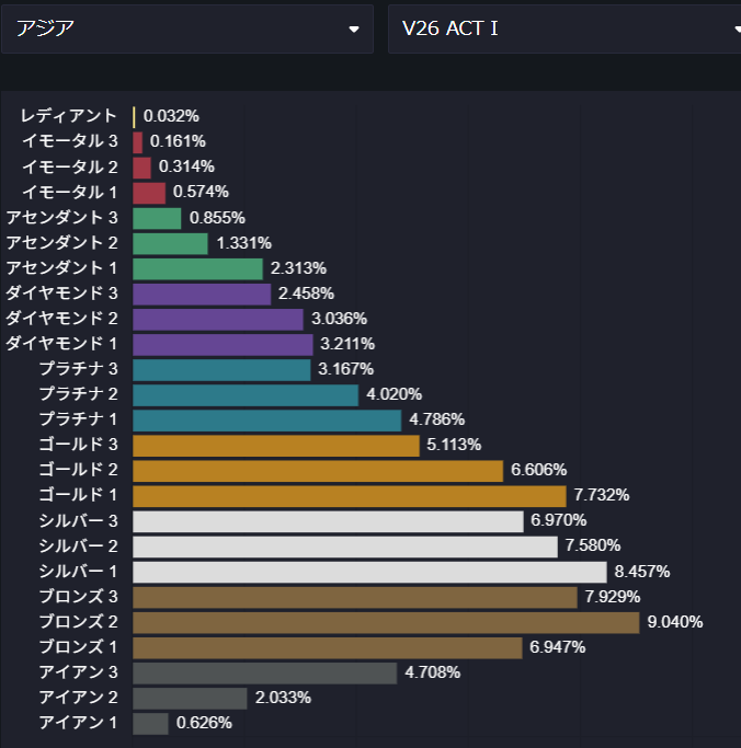 このグラフからわかる通り、アセンダント3であれば、上位2%に入る実力者であることが分かります。