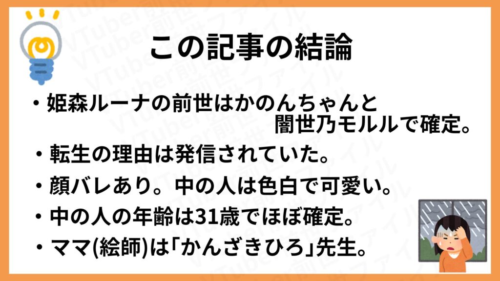 今回の記事では、姫森ルーナの前世や中の人について徹底解説しました。いかがでしたか?