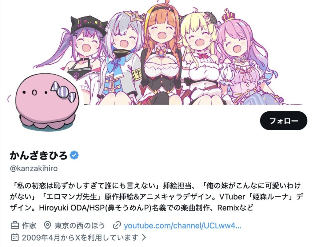 かん ざきひろ先生は日本のイラストレーターで、アニメーターや作曲家・編曲家・リミキサーDJとしても幅広く活躍している方です。
