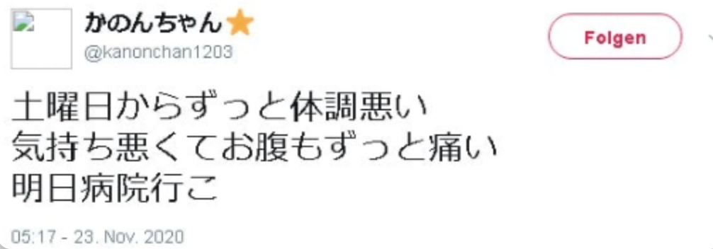 かのんちゃんは2020年11月23日に「お腹も痛い、明日病院に行こ」とSNSで発信しています。