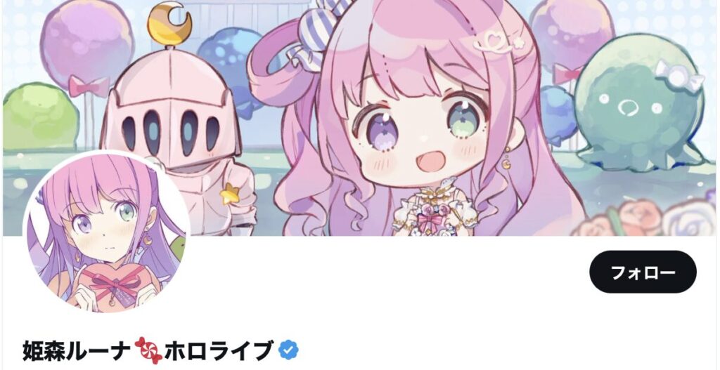 姫森ルーナのXトップページにも絵描かれています(画像の右上)。