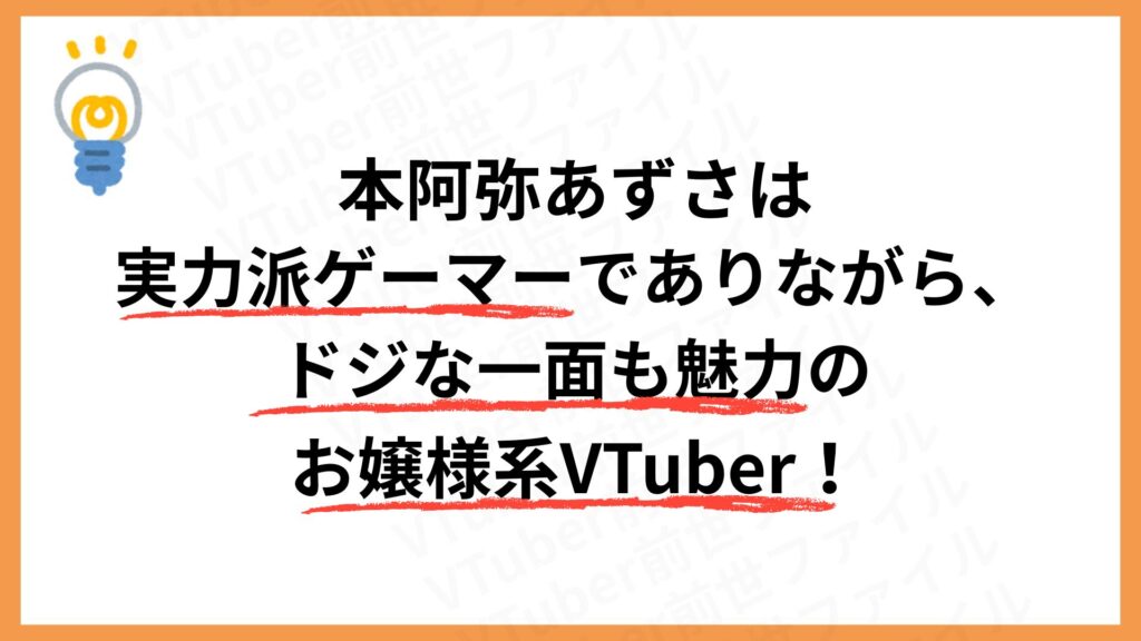 本阿弥あずさの初配信動画では6/23誕生日の理由について、「格ゲー昇竜拳(623)からきている」「生まれながらの格ゲーマー」と言っていました。