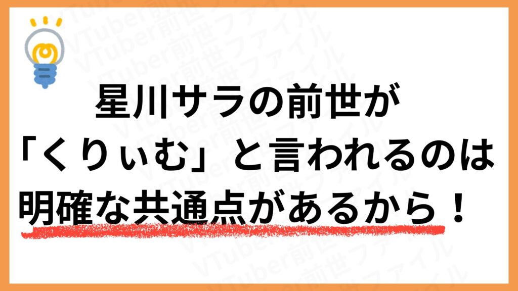 こうした4つの共通点から、ファンの間では星川サラの前世はくりぃむだと、確信に近い声が上がっています。