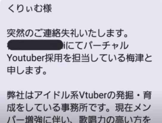 そんなくりぃむですが、Vtuber事務所からスカウトがあったことをサブ垢でツイートしていました。