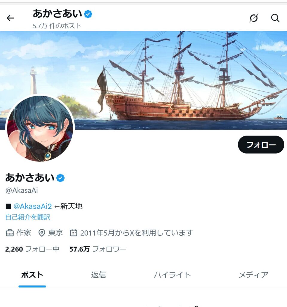 | Xアカウント | こちら(鍵垢?) |