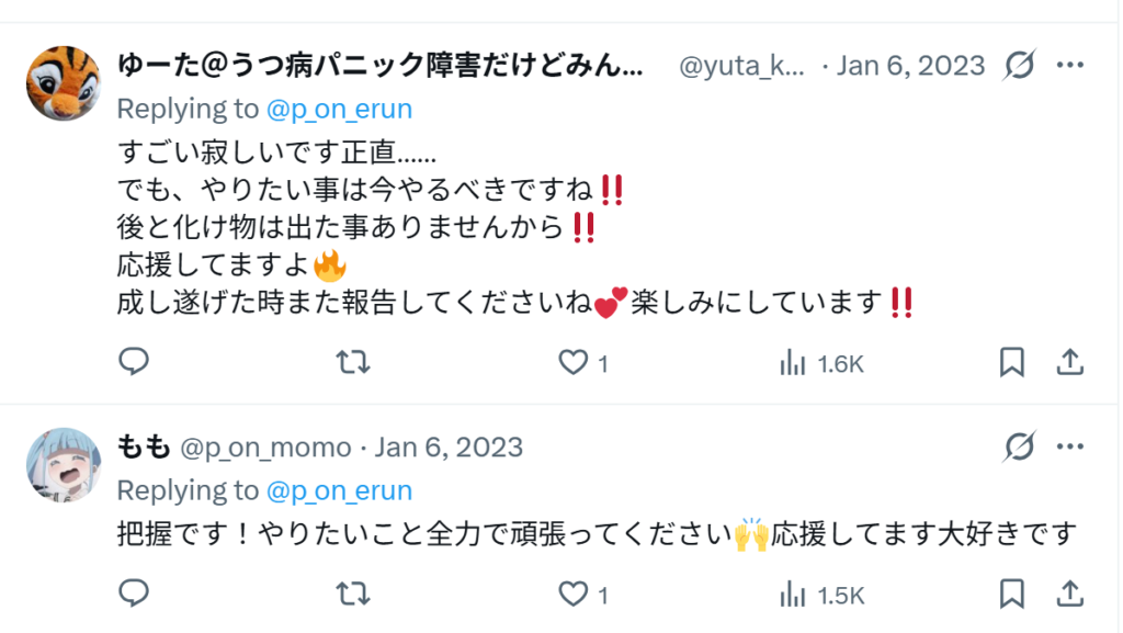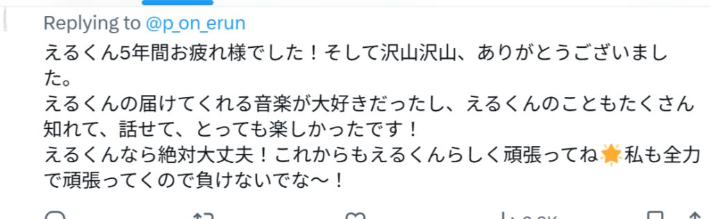 そしてこの時期のえるとファンとのやり取りを調べていると、「える」としては活動休止した理由が、「やりたいことが見つかった」と言うことであると見られる投稿がたくさん見当たりました。
