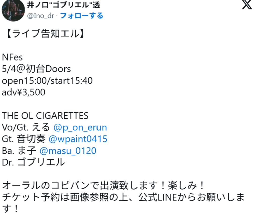 | 学歴・経歴 | バンドのボーカル・ギター、MIX師 |