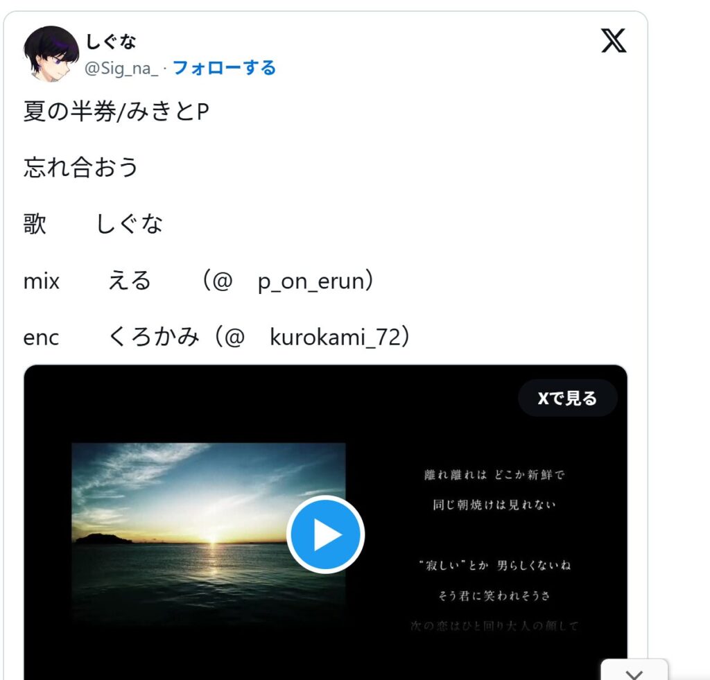 現在えるのSNSアカウントはすべて削除・非公開とされていますので、Xなどで残っている分でしかえるの歌声は確認することができません。
