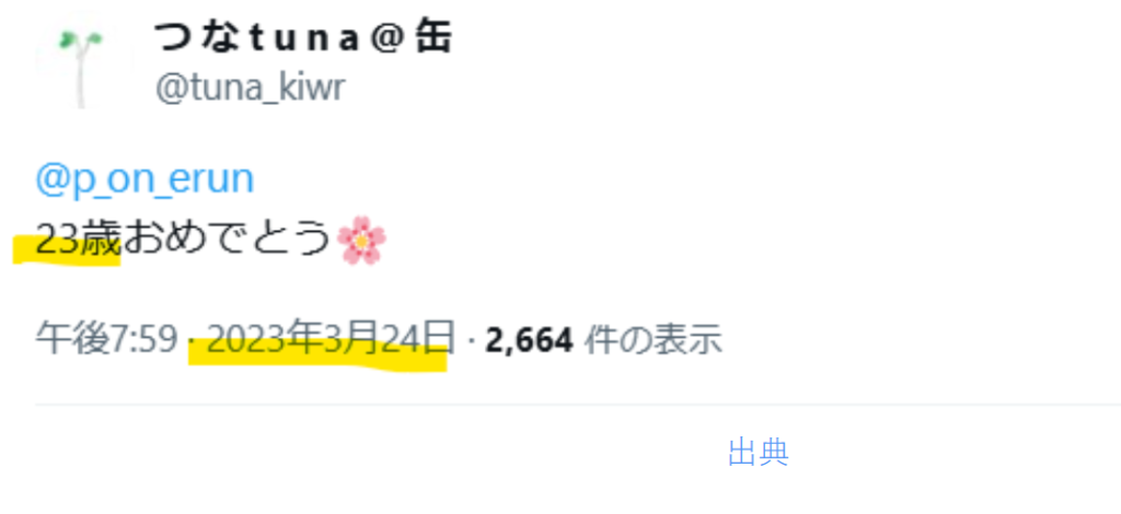 なぜかと言いますと、前世のえる時代にファンから2023年3月24日に23歳の誕生日を祝われていることで判明しました。
