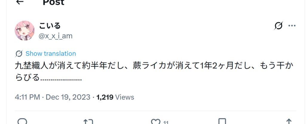 2022年11月まではVTA生として活動していたらしいのですが、急遽消えて(活動しなくなった)しまったとXでは言われております。