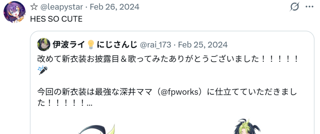 伊波ライの新衣装発表時に、同じにじさんじのユニット「VOLTACTION」のメンバー渡会雲雀の衣装と似ているのでは?と言われてしまったようです。