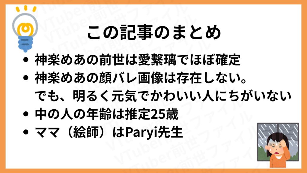 この記事では、神楽めあの前世(中の人)、顔バレや年齢について、さまざまな情報を整理しながらわかりやすく解説します!