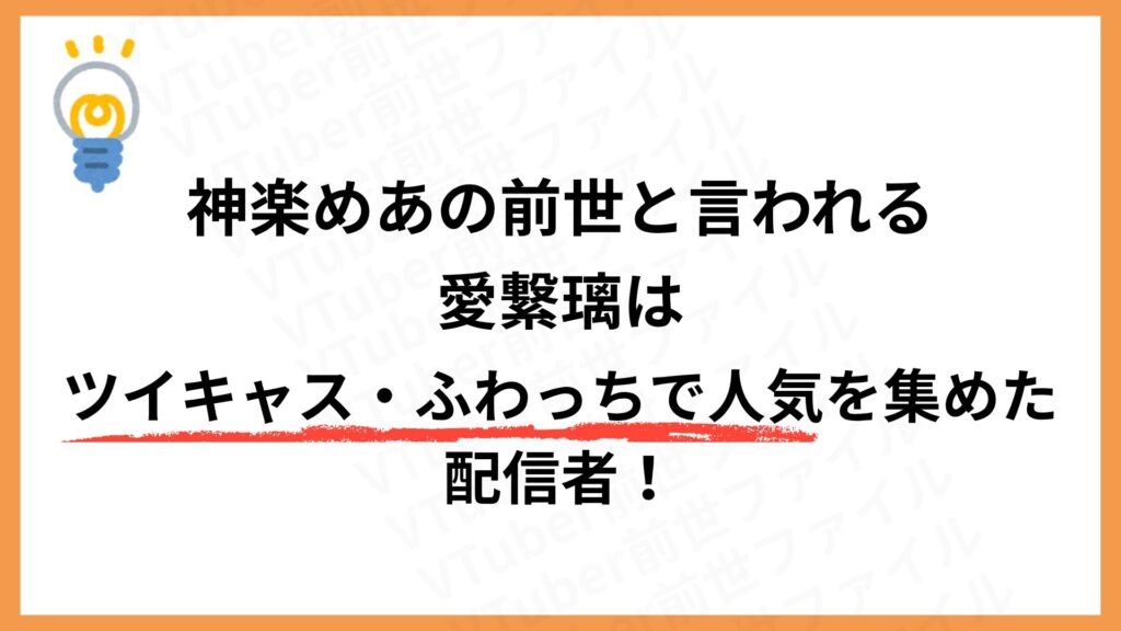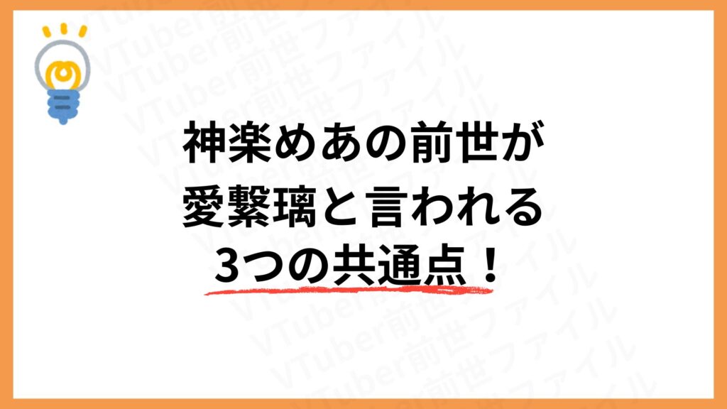 神楽めあと愛繁璃が同一人物だという噂の発端となった声質や筆跡、交友関係は、この前世説の信憑性をさらに高めていると言えるでしょう。