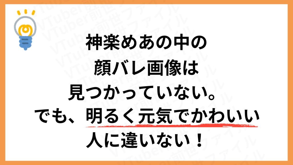 現在、神楽めあの顔バレ画像は確認されていません。