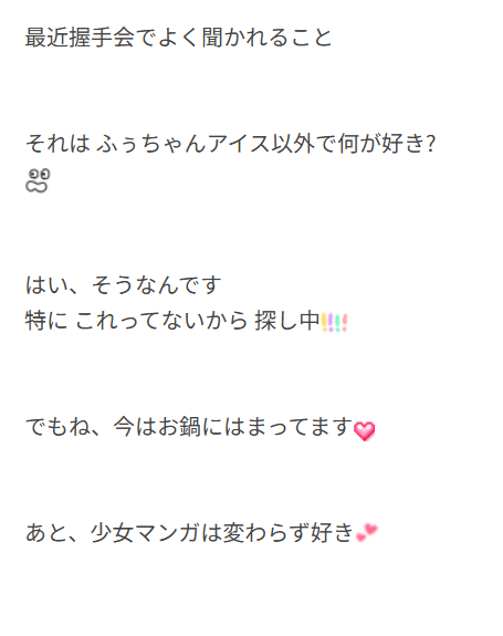 こちらは矢倉楓子のブログ記事で、少女漫画が好きとのこと。