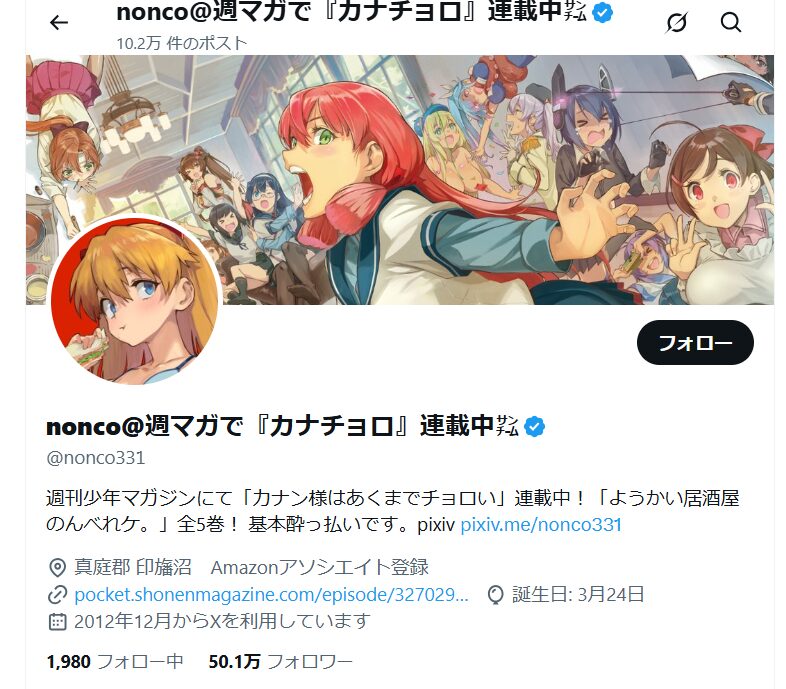 週刊少年マガジンで「カナン様はあくまでチョロい」連載中の人気絵師さんです。