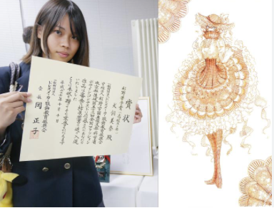 2015年開催の全国ファッションデザインコンテストの高校生の部で「杉野芳子賞」を受賞しています。