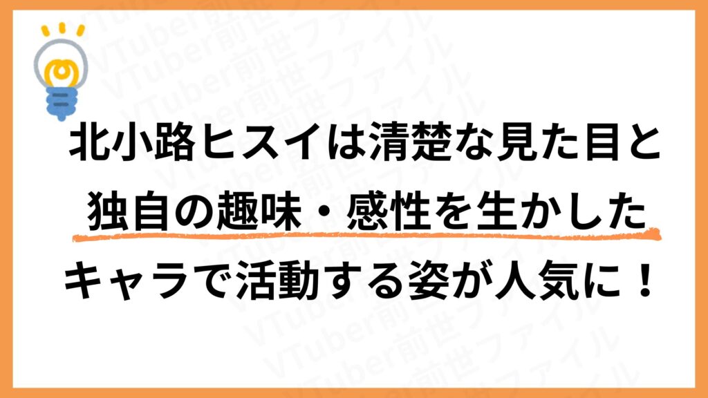 北小路ヒスイは独自の趣味と感性で活動を展開しているのが主な特徴と言えるでしょう。